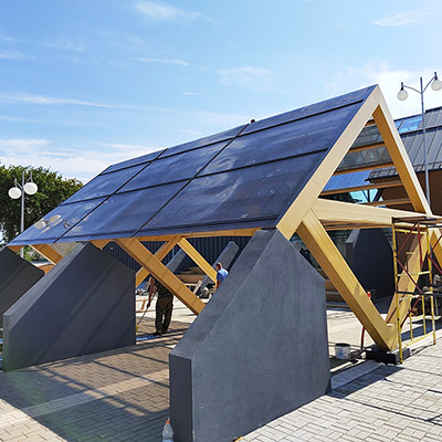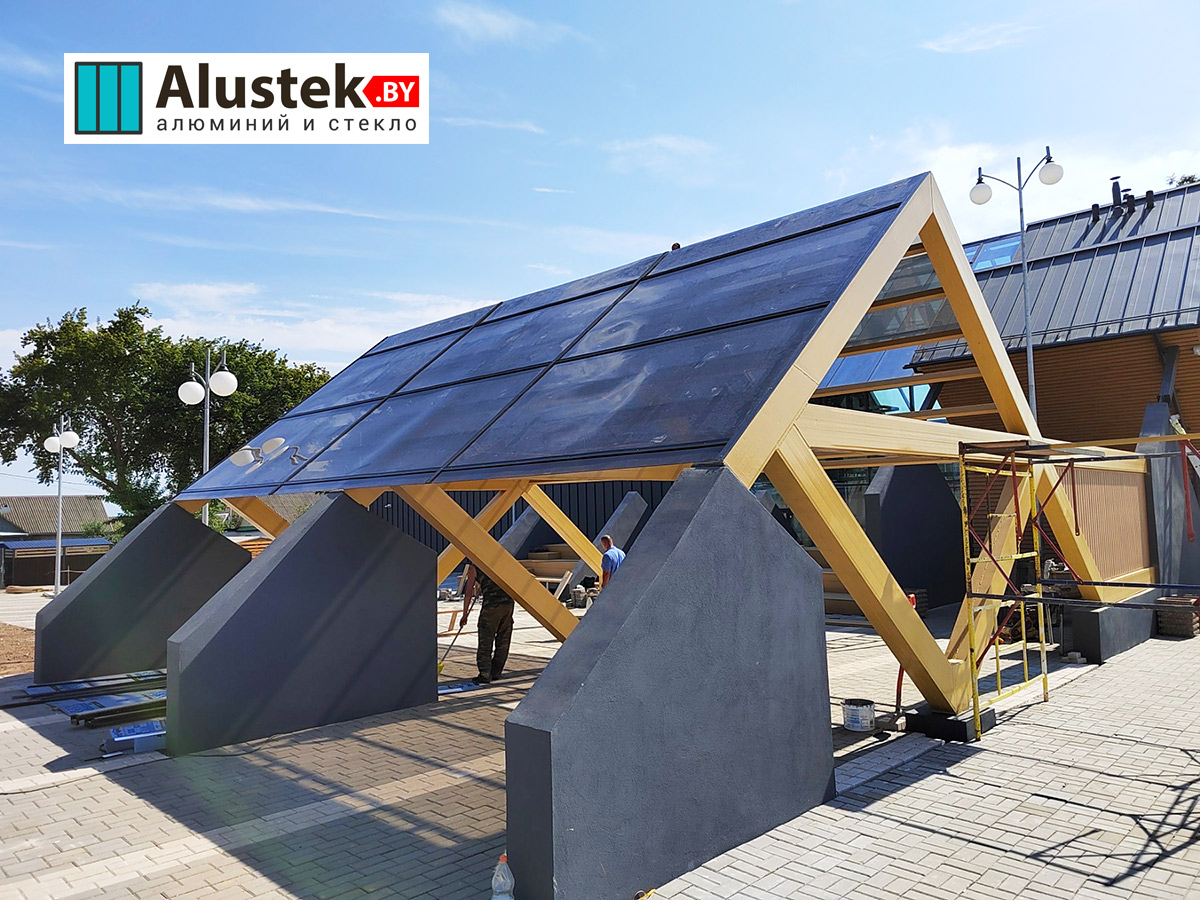 Премиальный вариант навесов с большим сроком службы для частных домов, административных зданий, торгово-развлекательный объектов, гостиничных комплексов.
