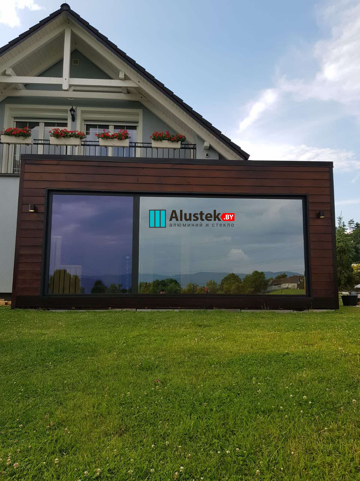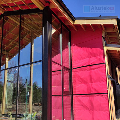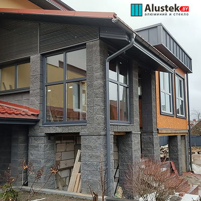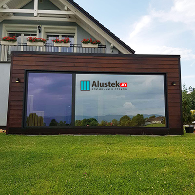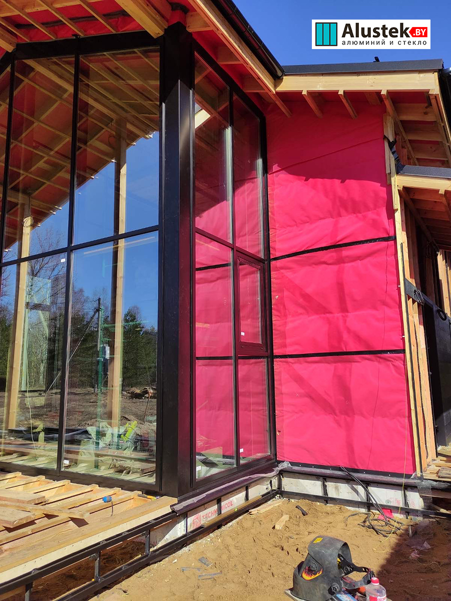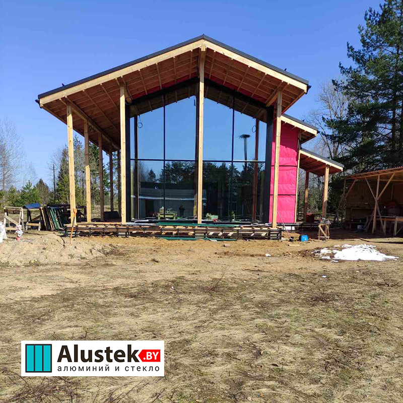 Современное энергоэффективное решение на базе алюминиевого профиля Alutech. Витражное остекление позволяет получить максимально много света и стереть барьер между вашим домом и природой.
