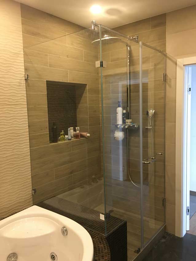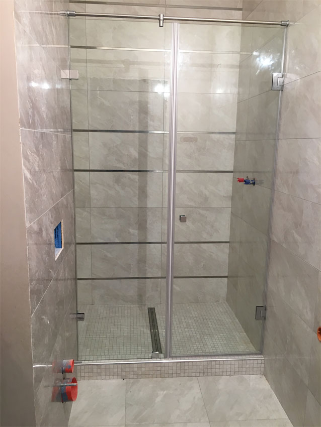 Часто в ванной комнате душевая ниша предусмотрена по проекту. В таком случае необходимо отделить ее от основного пространства. Если ниша узкая, то можно установить распашную дверь необходимого размера. Если ниша широкая, но можно использовать различные комбинации в виде откатных дверей, распашной двери в сочетании с глухим стеклом и прочие варианты.