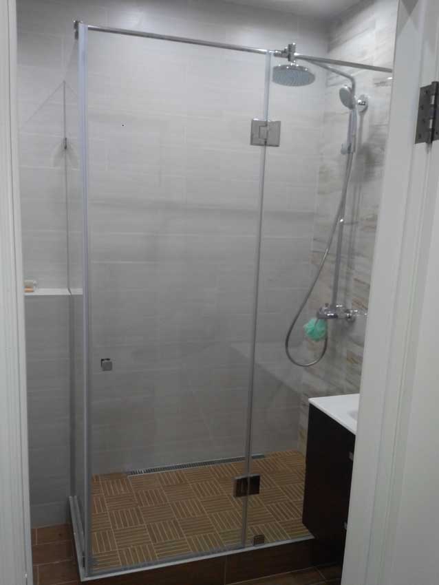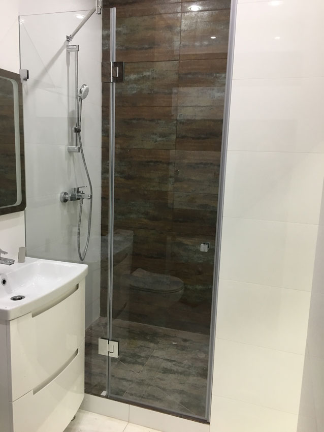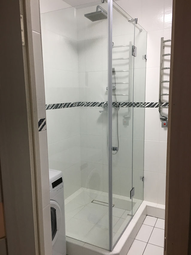 Такая конструкция в большинстве случаев имеет 2 или 3 стенки, которые устанавливаются непосредственно над поддоном из плитки или другого материала. Преимущества данного решения очевидны – мы можем установить такую конструкцию в уже имеющейся ванной комнате или другом пространстве без привязки к первоначальному проекту.