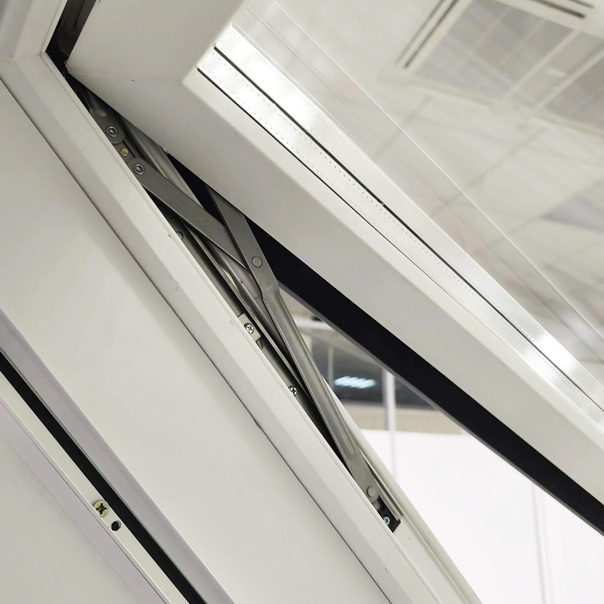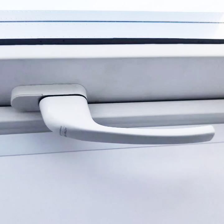 Защищено от проникновения снаружи: открывание возможно только изнутри. Уплотнитель выполнен из белого EPDM, а белая рама и ручка создают минималистичную чистоту линий. Надёжность конструкции подтверждена использованием стандартной ПВХ-фурнитуры с дополнительными точками запирания, обеспечивающими безопасность и долговечность.