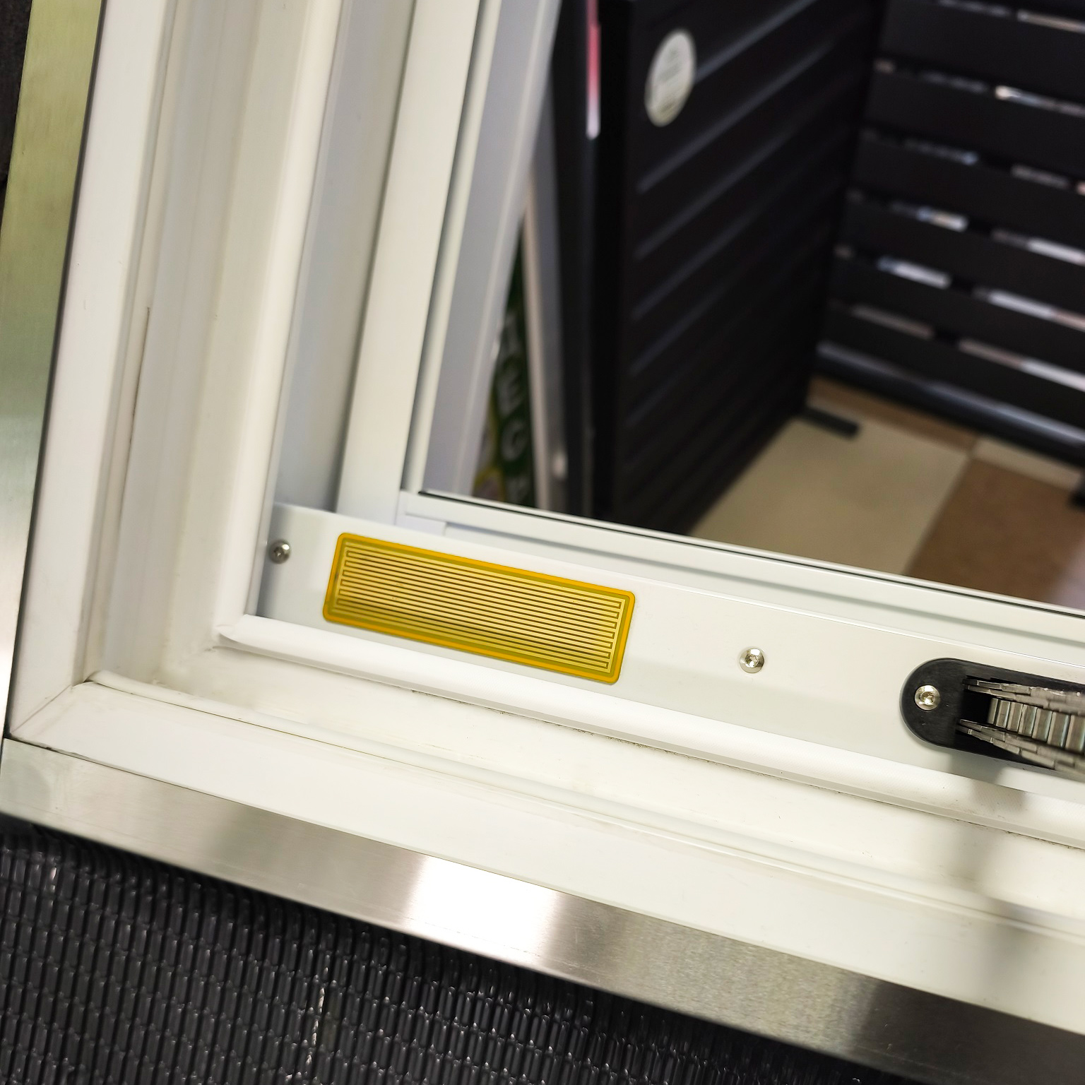 Защищено от проникновения снаружи, открывание возможно только изнутри помещения. Уплотнитель выполнен из белого EPDM, белая рама и белый цвет привода создают минималистичную чистоту линий.