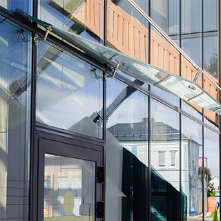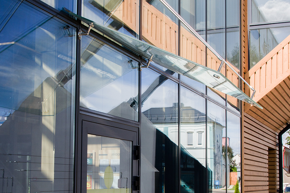 Компания Alustek.by в рамках отдельной самостоятельной услуги или как элемент комплексного остекления предлагает вам заказать изготовление и монтаж стеклянных козырьков и навесов в Минске и Минской области.