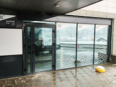 Остекление входный группы фасада банка БЕЛВЭБ в Минске.